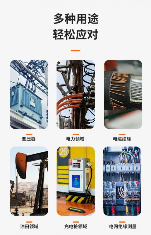 它適用于測(cè)量各種絕緣材料的電阻值及變壓器、電機(jī)、電纜及電器設(shè)備等的絕緣電阻。電信、電力、氣象、機(jī)房、油田、電力配電線路、鐵塔輸電線路、加油站、工廠接地網(wǎng)、避雷針等接地電阻。