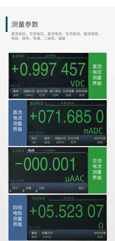 直流電壓、交流電壓、直流電流、交流電流、直流電阻、電容、頻率、導通、二極管、溫度 |
