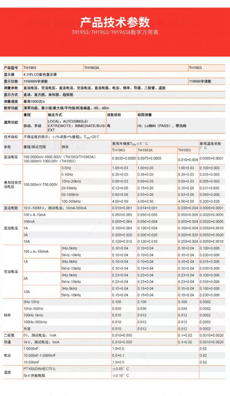 100.0000mV-1000.000V(TH1963/TH1963A) 100.000mV-1000 00V(TH1953) |