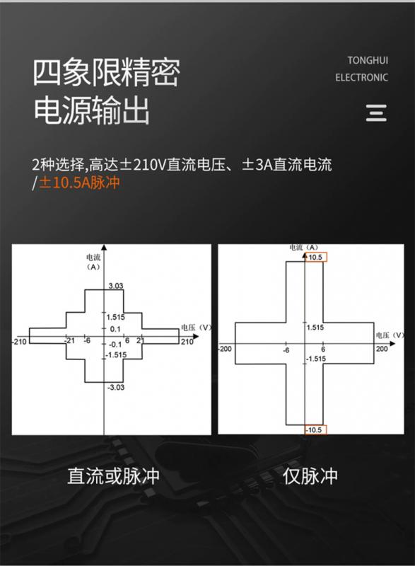 TH1991/TH1992系列精密源/測量單元可輸出高達±210V直流電壓、±3A直流電流以及±10.5A脈沖電流、最小10fA/100nV的電源和測量分辨率,支持高速采樣,可生成任意波形。