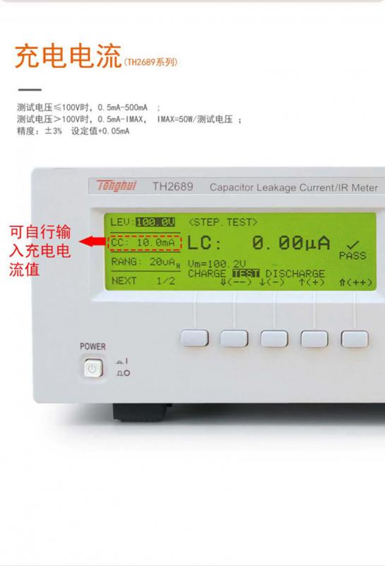 TH2689型電容器漏電流/絕緣電阻測(cè)試儀分別提供最大測(cè)試電壓:800V,充電電流0.5mA~500mA(>100V時(shí)由最大輸出功率50W限制)。主要應(yīng)用于電解電容/陶瓷電容等漏電流,絕緣電阻及鋁電解電容陽極箔耐壓測(cè)試。也可應(yīng)用突波吸收器,齊納二極管,氖燈管等動(dòng)作電壓確認(rèn)和漏電流測(cè)試。