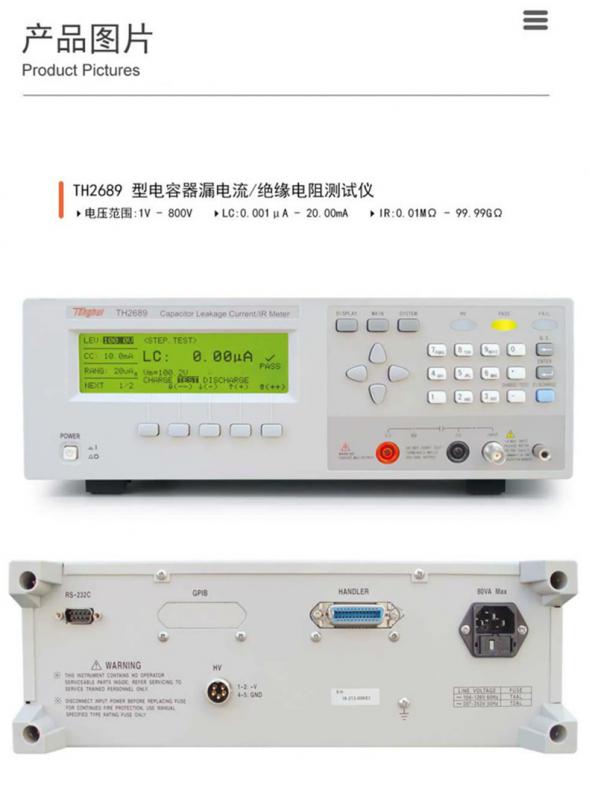 TH2689 電容器漏電流/絕緣電阻測(cè)試儀產(chǎn)品價(jià)格: