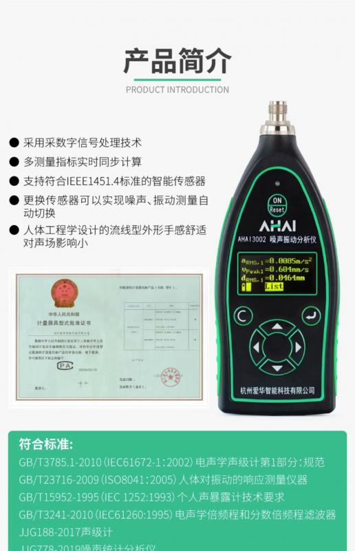 HAI3002噪聲振動分析儀配上帶有符合IEEE1451.4標準的振動傳感器后,可以對振動加速度、速度、位移的峰值、峰峰值、有效值,振動頻率同時進行測量??捎糜陔姍C、泵、風機、家用電器、壓縮機、煙機、發電機、齒輪箱等各類機械設備的出廠檢驗、狀態監測和故障診斷,也可用于工作場所物理因素(手傳振動)的測量。 也可配上傳聲器時是一款手持式噪聲分析儀器。可同時測量噪聲總值、統計、頻譜、聲暴露。測量結果可以保存在儀器內部,也可以實時通過藍牙、RS485/RS232接口上傳到計算機、前端服務器或云服務器上。廣泛應用于設備噪聲、環境噪聲等領域的測量。