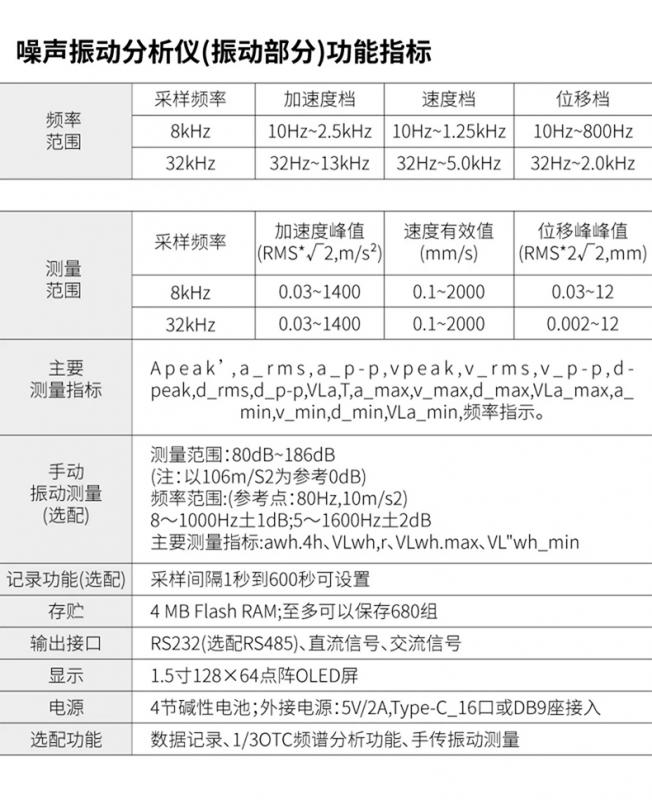 注:也可選配1/3 OCT頻譜分析功能,且1/1 OCT和1/3 OCT只能選其中一種。 |