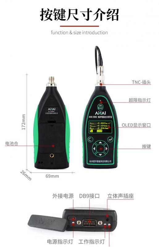 AHAI3002噪聲振動分析儀配上帶有符合IEEE1451.4標(biāo)準(zhǔn)的振動傳感器后,可以對振動加速度、速度、位移的峰值、峰峰值、有效值,振動頻率同時進(jìn)行測量。可用于電機(jī)、泵、風(fēng)機(jī)、家用電器、壓縮機(jī)、煙機(jī)、發(fā)電機(jī)、齒輪箱等各類機(jī)械設(shè)備的出廠檢驗、狀態(tài)監(jiān)測和故障診斷,也可用于工作場所物理因素(手傳振動)的測量。 也可配上傳聲器時是一款手持式噪聲分析儀器。可同時測量噪聲總值、統(tǒng)計、頻譜、聲暴露。