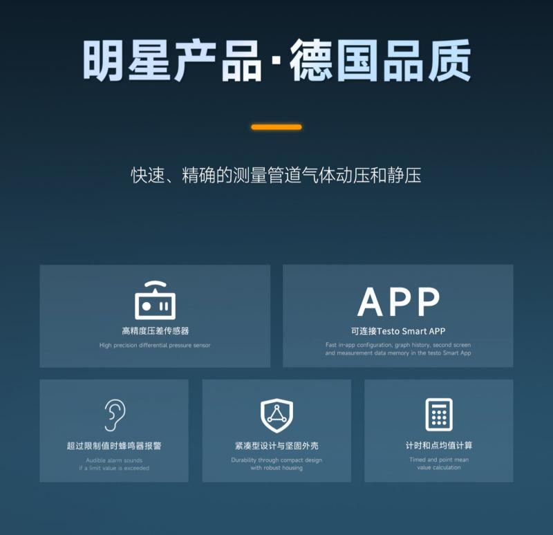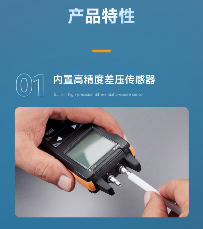 使用數字差壓測量儀testo 512-2(測量范圍0 ~ 2000 hPa),簡單快速精確地測量管道氣體動壓和靜壓,也適用于一般壓力、過濾器檢查和皮托管測量。
