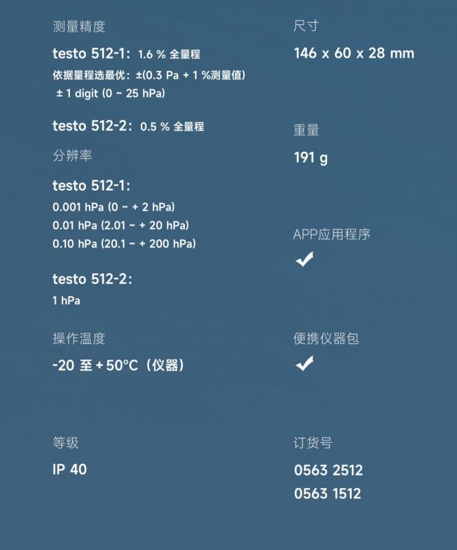 testo512 -2(0-2000hpa) 數字壓差測量儀 可連接APP產品價格: