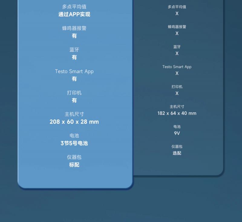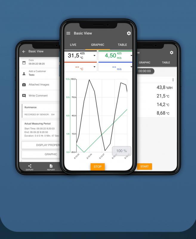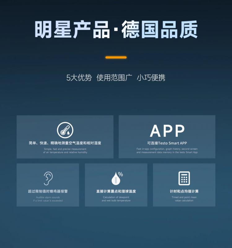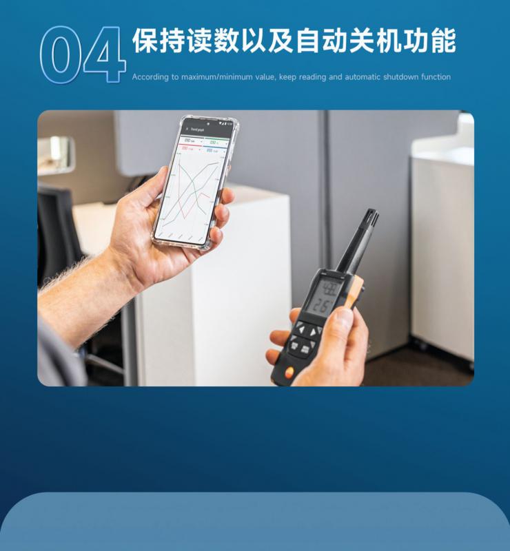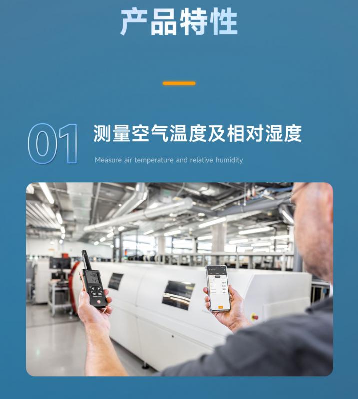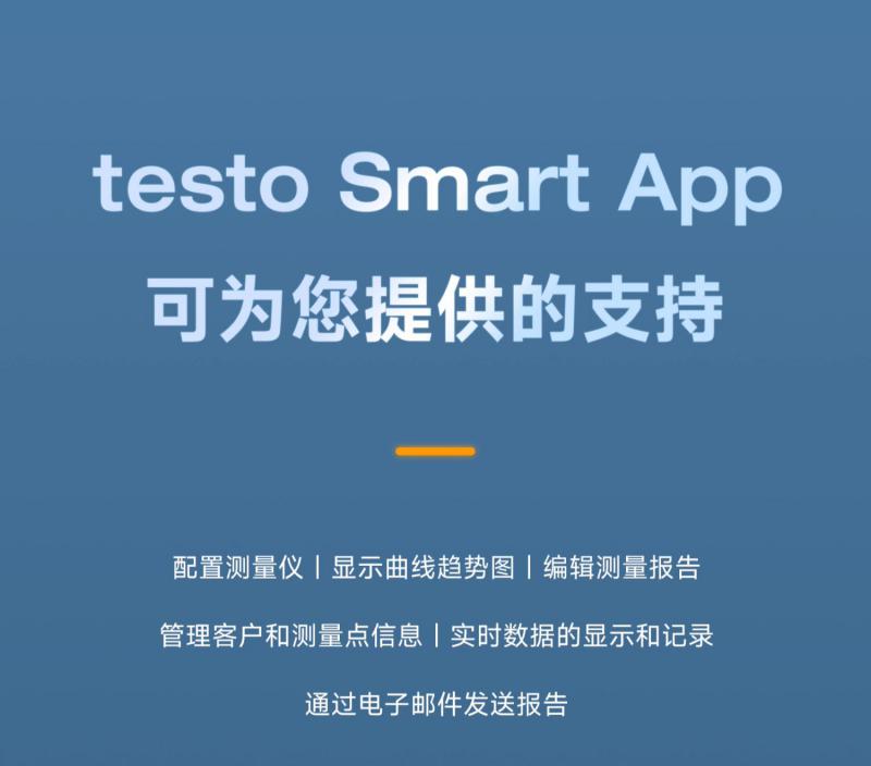 搭載 testo Smart APP 應用程序,快速配置、顯示曲線趨勢圖、第二屏幕顯示和測量數(shù)據(jù)存儲。