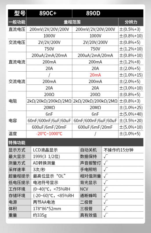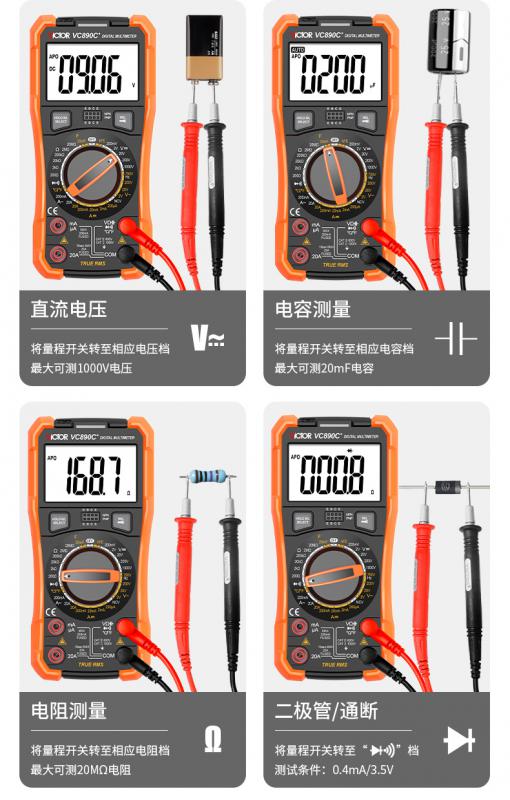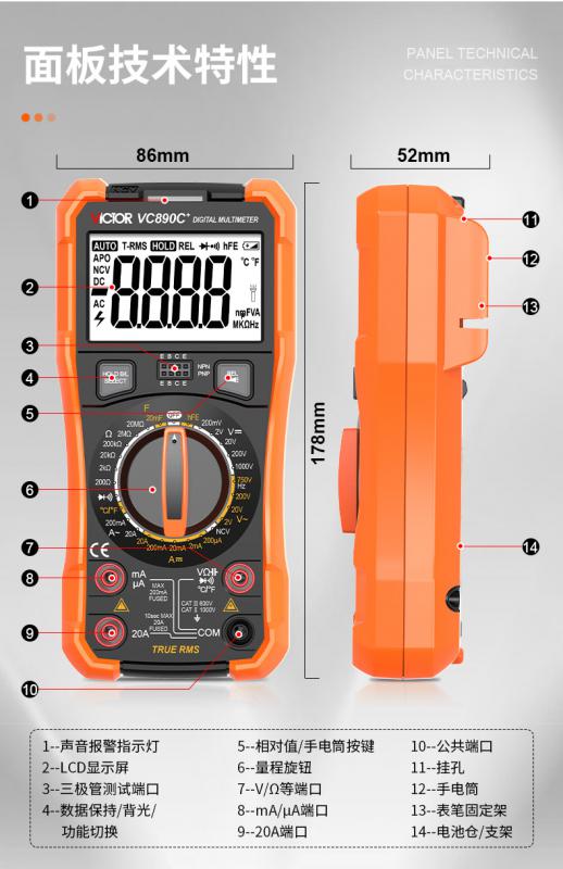勝利數字萬用表VC890C+高精度全自動智能萬用表產品價格:
